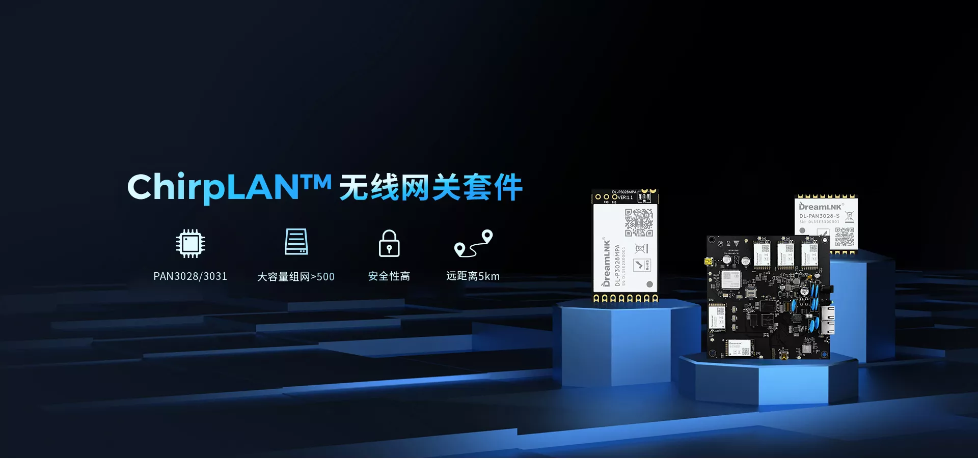 ChirpLAN网关套件是骏晔科技为IoT远距离通信技术而设计的星形无线网络系列产品,内置无线局域网络(LAN),实现了 Sub-1G 与外网的数据透明传输 。 套件包含网关 DL-GW-P30 、 终端SPI模组DL-PAN3028-S 、 终端AT指令模组DL-P3028MPA 以及演示终端 DL-DB-USB001 。