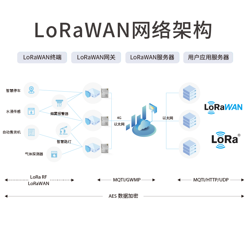 可用于监测土壤湿度、温度、光照等环境参数,通过LoRaWAN网络将数据实时传输到监控中心,实现对农田的精准管理和自动化控制。